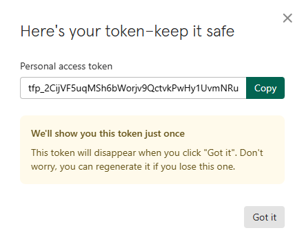 - Click "Copy" to send the token to your CSM, then confirm by clicking "Got it".