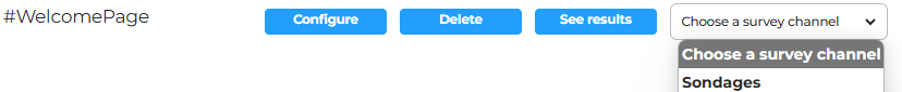 - Find the survey you want to publish in the list and associate it with a channel. Your users will then find the survey directly on that channel.