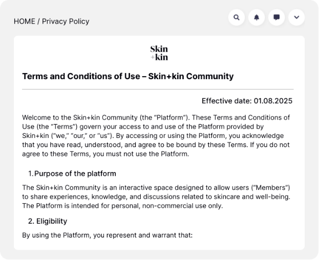 Custom Pages are free-form pages designed to create any type of content (Terms of Use, FAQ, Community Guide) that can't be integrated into other channels/sections of the platform.