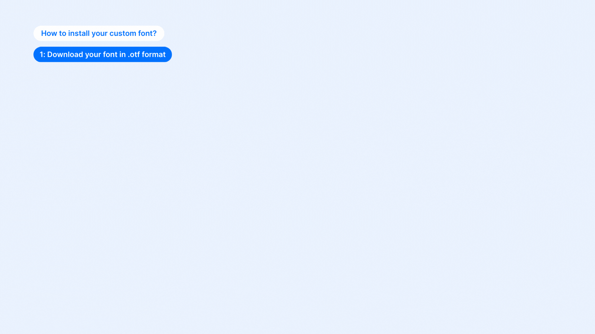 Common fonts work without installation and are generally available in word processing software: Arial, Calibri, Helvetica, Open Sans, Roboto.