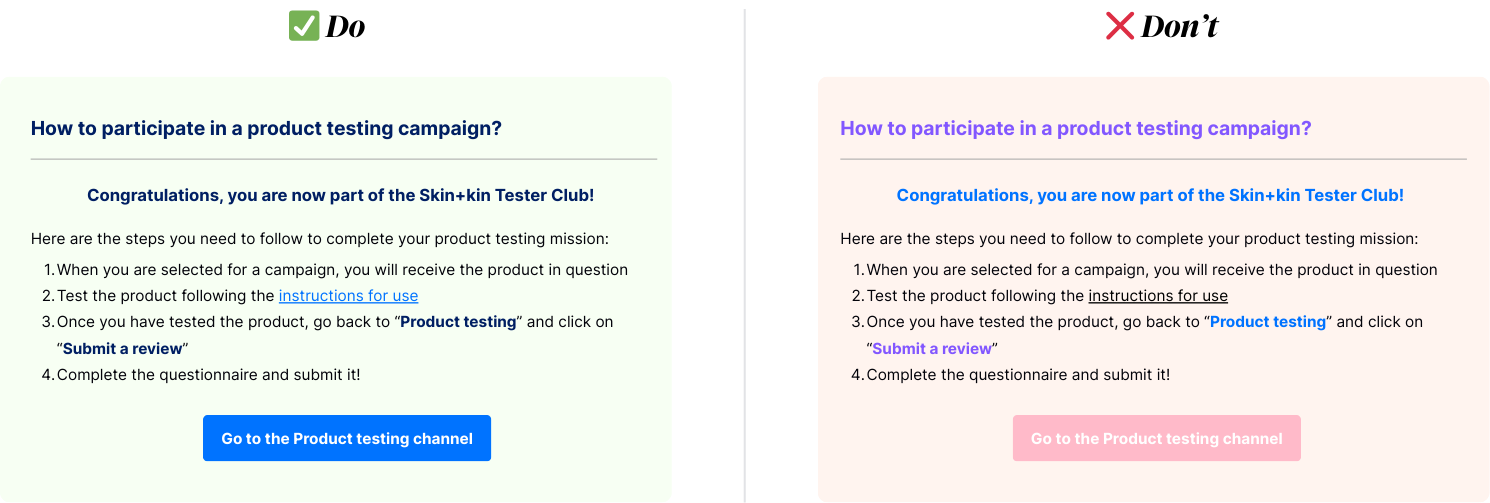 Apply a uniform color to all text. Use a distinct color for links to make them easily identifiable.