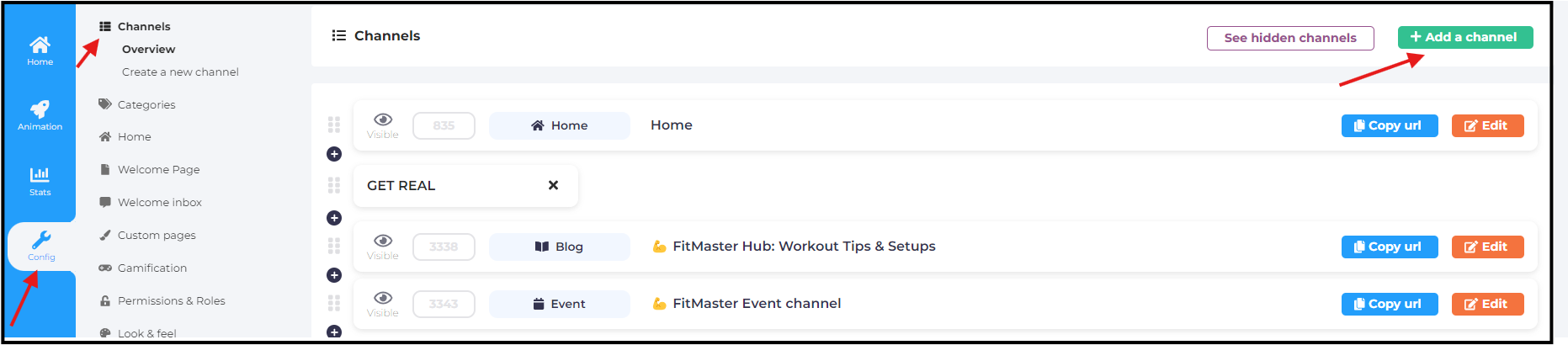 Your channels appear on the left banner of your community, you can organise them by categories in the back end so they can appear in the order you want