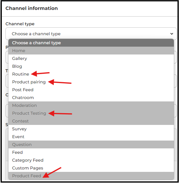 You can only create one type of product-related channel in each community. So, you can have just one Product Testing channel, one Routine channel, one product feed channel, and one Product Pairing channel.