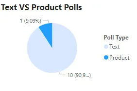 The chart in the bottom left shows the distribution of Polls created during the period by Poll type (Text or Products).
