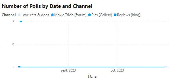 The chart in the bottom right shows the evolution of the number of Polls created during the selected period, grouped by channel.