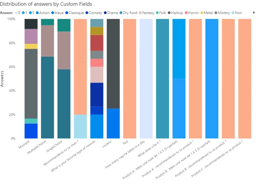 Each column represents a custom field, and each section of the column represents the number of people who selected that response.