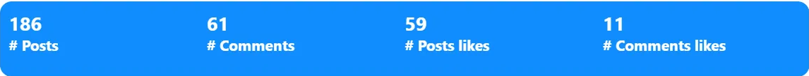 The table provides the details per product of the number of posts and comments related to it, along with the number of likes on those posts and comments.