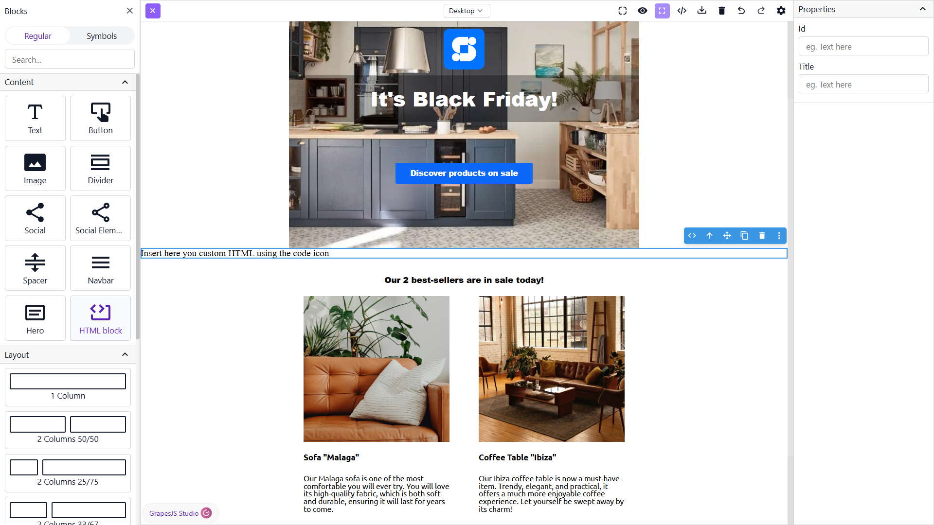 4. In the left side of the editor, you can also select individual elements of your email to customize their appearance or rearrange them.