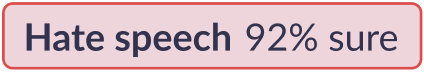 For example, a 92% hate speech score means that the AI identifies a high probability of hate speech in the content.
