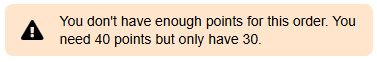 If the member does not have enough points, an error message is displayed and the checkout button is disabled.