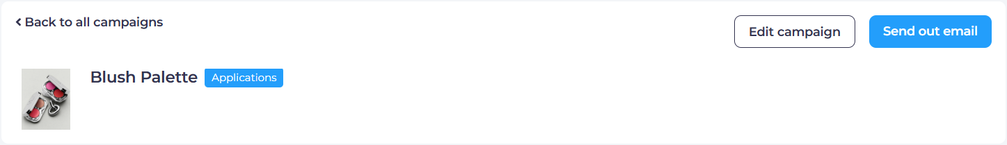 You can send fully personalized targeted emails directly from a product testing campaign. To do so, open the campaign of your choice and click "Send out email" in the top-right corner.