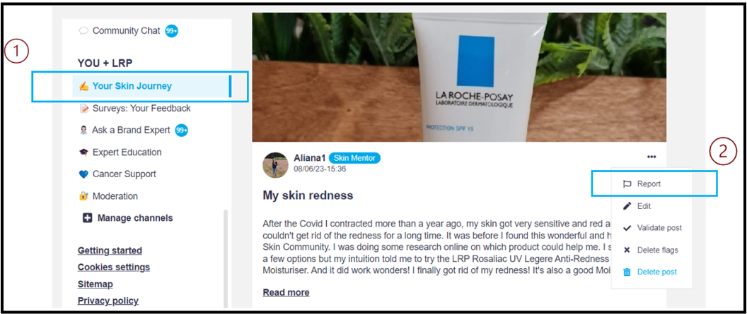 Les communautés s'auto-régulent car tout membre a le droit de signaler du contenu (post et commentaires) ou des utilisateurs inappropriés. Ils jouent un rôle important dans la sécurité des espaces communautaires.
