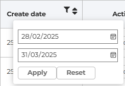 Par exemple, pour obtenir les utilisateurs enregistrés entre le 01/03/2025 et le 31/03/2025, sélectionne le 28/02/2025 comme première date et le 31/03/2025 comme seconde date :