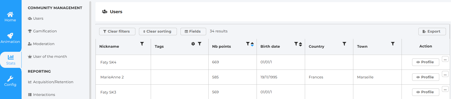- Filtrer, taguer et exporter les données des utilisateurs.