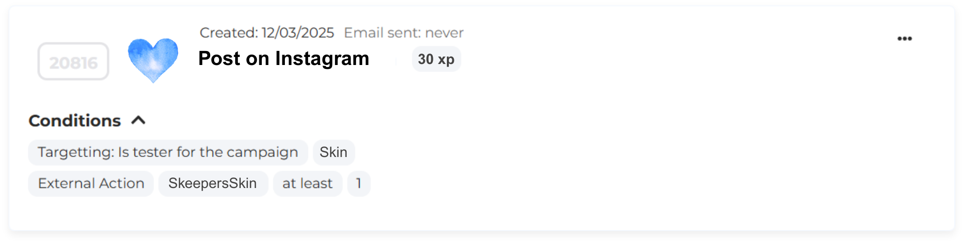 Si une campagne est mentionnée dans les conditions de la mission, dans Animation > Product Testing, cherche la campagne concernée. Vérifie que l'utilisateur participe à cette campagne en le cherchant avec son ID/pseudo.